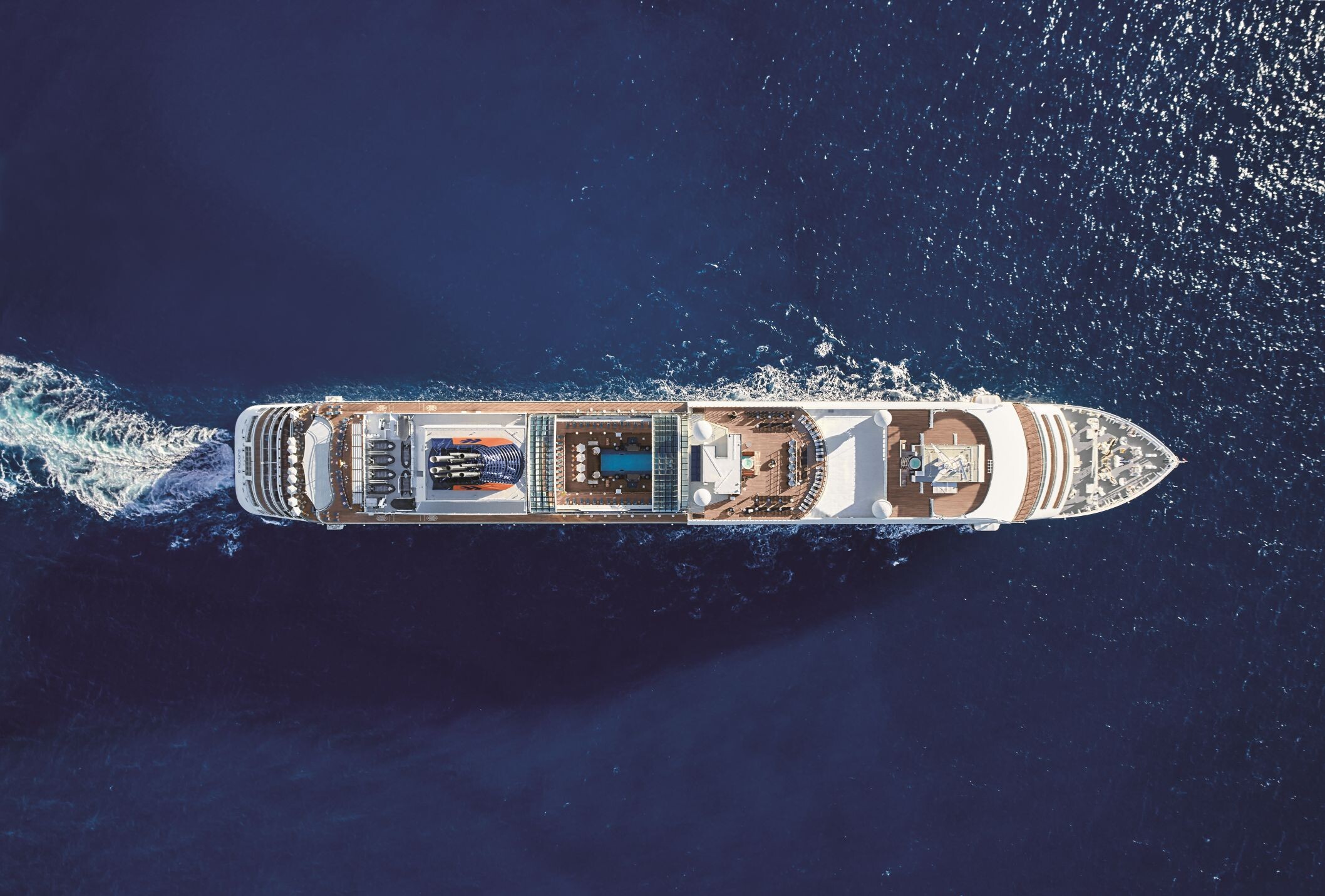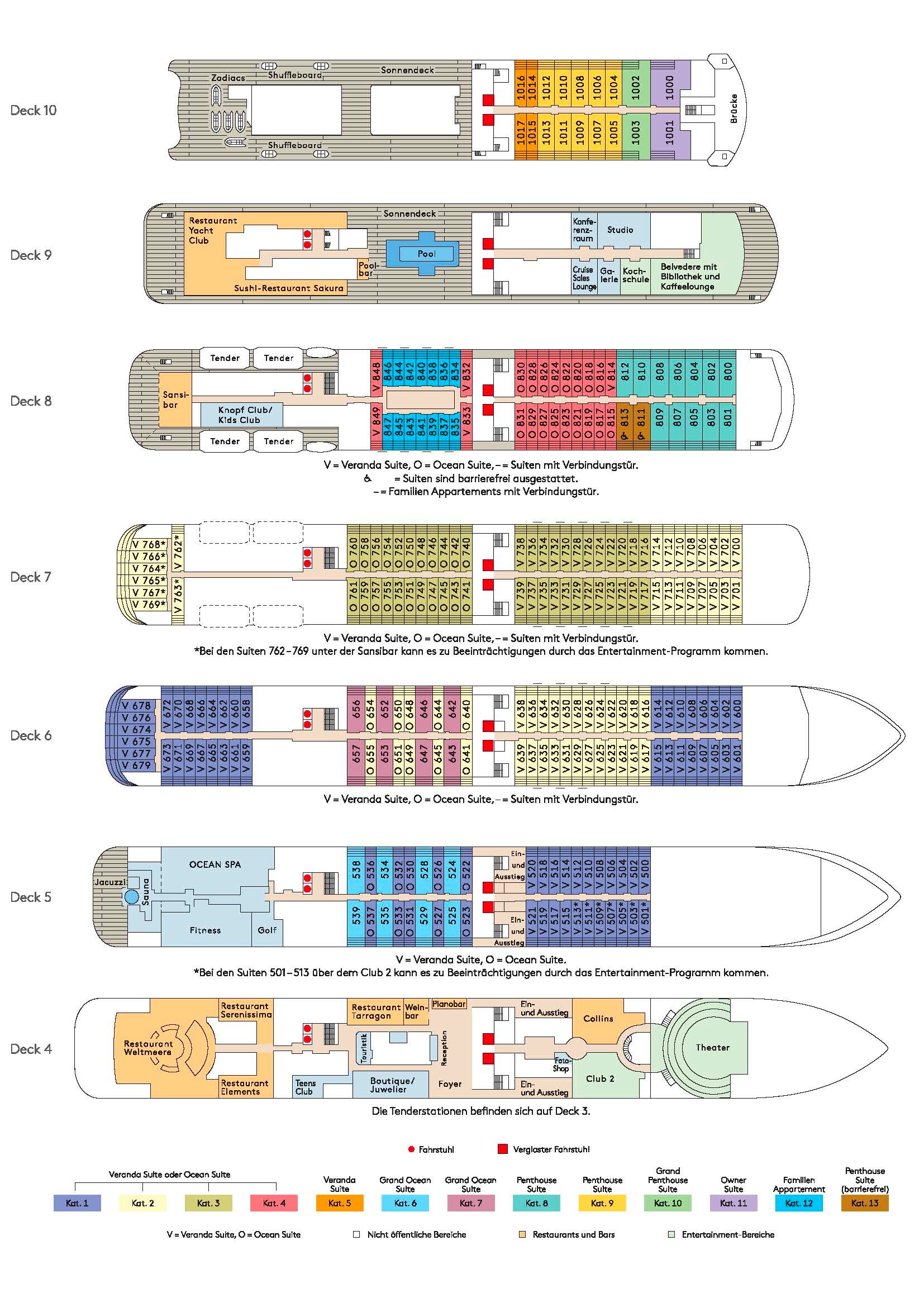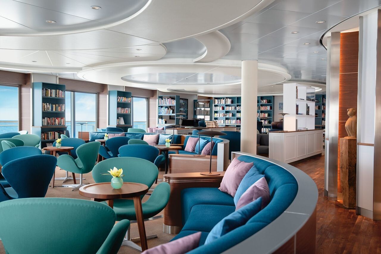 Klare, zeitgemäße Eleganz prägt das Design des Schiffs: lichtdurchflutete Suiten mit eigener Veranda, großzügige Außendecks, eine vielfältige Gastronomie auf Spitzenniveau sowie eine exzellente Spa- und Fitnesslandschaft schaffen eine Atmosphäre, die internationaler Leichtigkeit verpflichtet ist. Kunstwerke renommierter Künstler:innen, anspruchsvolle Unterhaltung und ein vielfältiges Kursangebot ergänzen das Bordleben auf unaufdringliche Weise.
