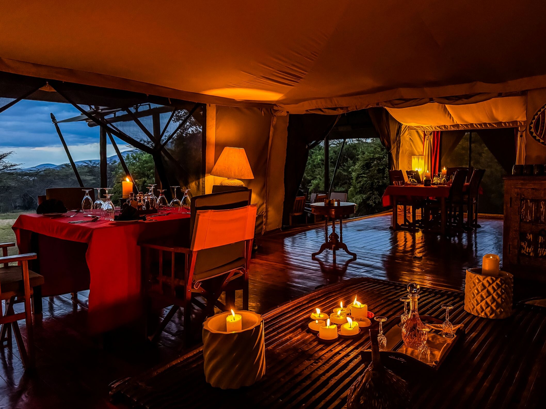 Mit einem Gin & Tonic in der Hand, während die Sonne langsam als glutroter Ball am Horizont versinkt, sind romantische Momente für die Ewigkeit garantiert. Genießen Sie die unvergleichliche Aussicht auf die spektakuläre Landschaft und die undurchdringliche Wildnis der Mbulia Conservancy, die sich so weit erstreckt, wie das Auge reicht.