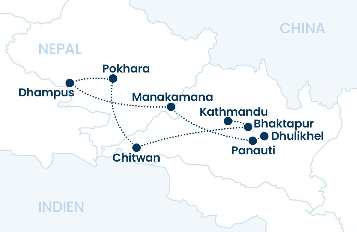 * Historisches Panauti und Auffahrt zum Mankamana-Tempel