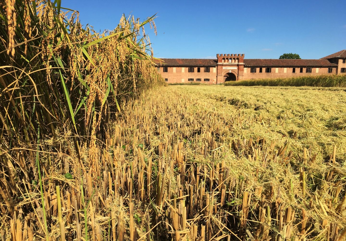 Direkt nach dem Mittagessen besichtigen Sie das Reisgut Acquarello, Tenuta Colombara. Die Besichtigung umfasst sowohl den modernen Bereich des Betriebs, wo biologischer Reis angebaut wird, als auch den musealen Teil, der sich mit der Geschichte des Reisbaus und der Arbeit der vergangenen Generationen beschäftigt. Die sachkundige Führung durch die Bildhauerin Claudia Haberkern, die vor Ort lebt, bietet interessante Einblicke in die Traditionen und die Entwicklung des Reisanbaus.